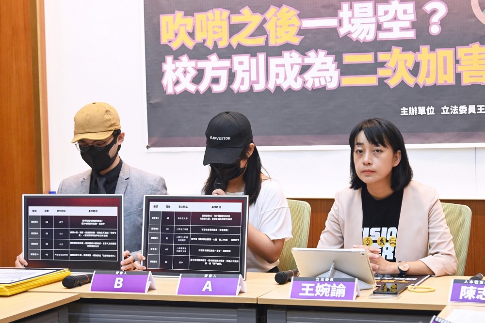 王婉諭強調,從去年台中黃姓狼師的案件來看,由教育單位主動擴大調查,提供必要的匿名保護,能夠使不敢發聲、害怕身份曝光的受害者受到幫助。因此,王婉諭要求教育部,針對這起校園性平案件,應盡速擴大調查,提供必要的匿名保護機制,在校園性平程序上,也應綜合考量犯行來進行懲處。