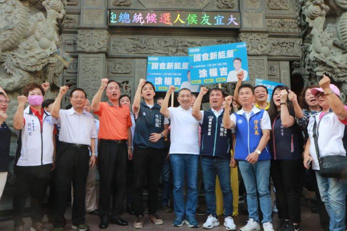 侯友宜今天參訪完遠雄港後,也在前立委廖正井及仁壽宮董事長、前立委陳根德,與立委參選人牛煦庭、涂權吉和多名在地市議員陪同下,一一前往大園仁壽宮、觀音保障宮、觀音甘泉寺參拜,沿途受到鄉親熱情迎接,高喊「凍蒜」、「總統好」;在甘泉寺時,在地書法家更送上「超群」墨寶,祝福侯友宜能夠繼續用超群的表現造福國家,為人民拚好日子。