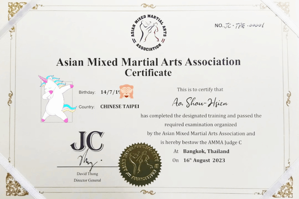 中華民國綜合格鬥協會(CTMMAA)裁判敖守嫻(Josie Ao)昨(16)日於曼谷亞錦賽,獲得亞洲綜合格鬥總會(AMMA)第一張國際裁判證。國民黨台北市議員應曉薇今日表示,全世界再也不會說台灣沒有綜合格鬥。我國綜合格鬥國家隊有信心拿下台灣第一座亞錦賽獎牌,想向國人說「明天看我們的」。