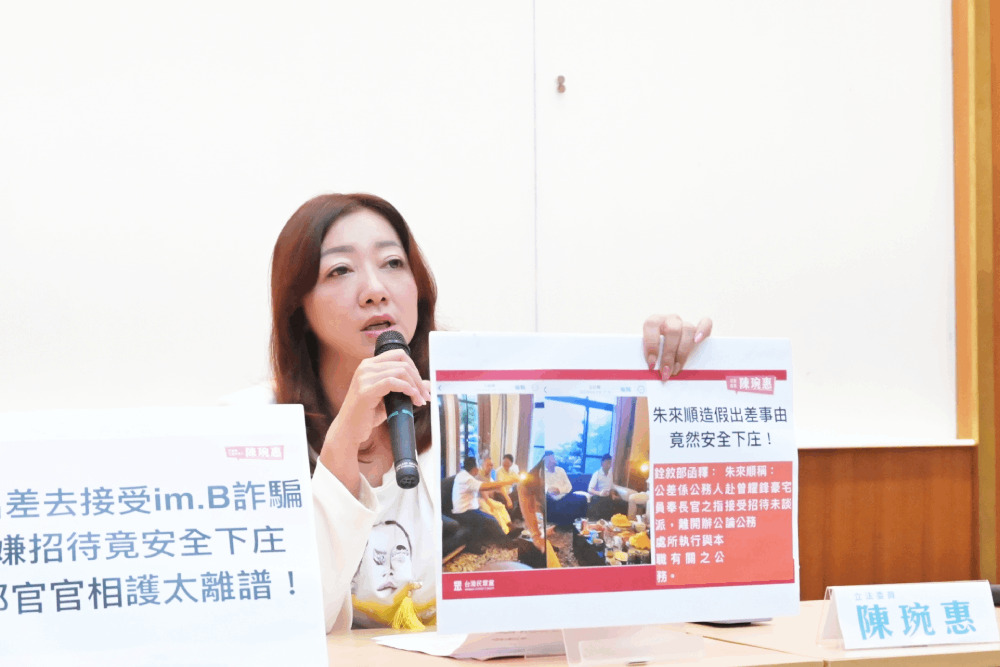 陳琬惠強調,im.B詐騙案受害人數高達近萬人,吸金數10億,到底有多少高官與民代跟這群詐騙犯不當往來?絕對不能這樣就算了,行政部門與檢調都要追到底,還給受害者一個公道。
