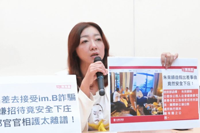 台灣民眾黨立法委員陳琬惠今(18)日表示,昨天已開記者會揭露台鐵副局長朱來順造假出差,去接受im.B詐騙犯主嫌曾耀鋒招待竟可安全下庄,同時也指出民進黨立法委員陳歐珀幫曾耀鋒向台鐵喬事。她質疑,對於只會包庇自己人的交通部,行政院長陳建仁還看得下去?結果一如預期,交通部選擇繼續包庇自己人。