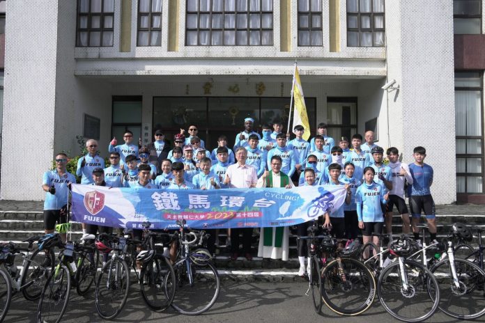這麼熱的天氣,您敢挑戰騎腳踏車千里環台嗎?今(20)日是輔仁大學112年度第十四屆鐵馬環台的出發日,一早總計50多人齊聚,在校長江漢聲以及校牧林之鼎神父進行聖水祈福儀式後啟程。特別的是鐵馬隊伍中有台灣小姐駱嫣帶著媽媽和阿姨,還有進修部的70歲學生,以及遠從上海返台的台商父子都加入行列,大家異口同聲地表示不管多苦多累一定要挑戰自己完成11天的任務!