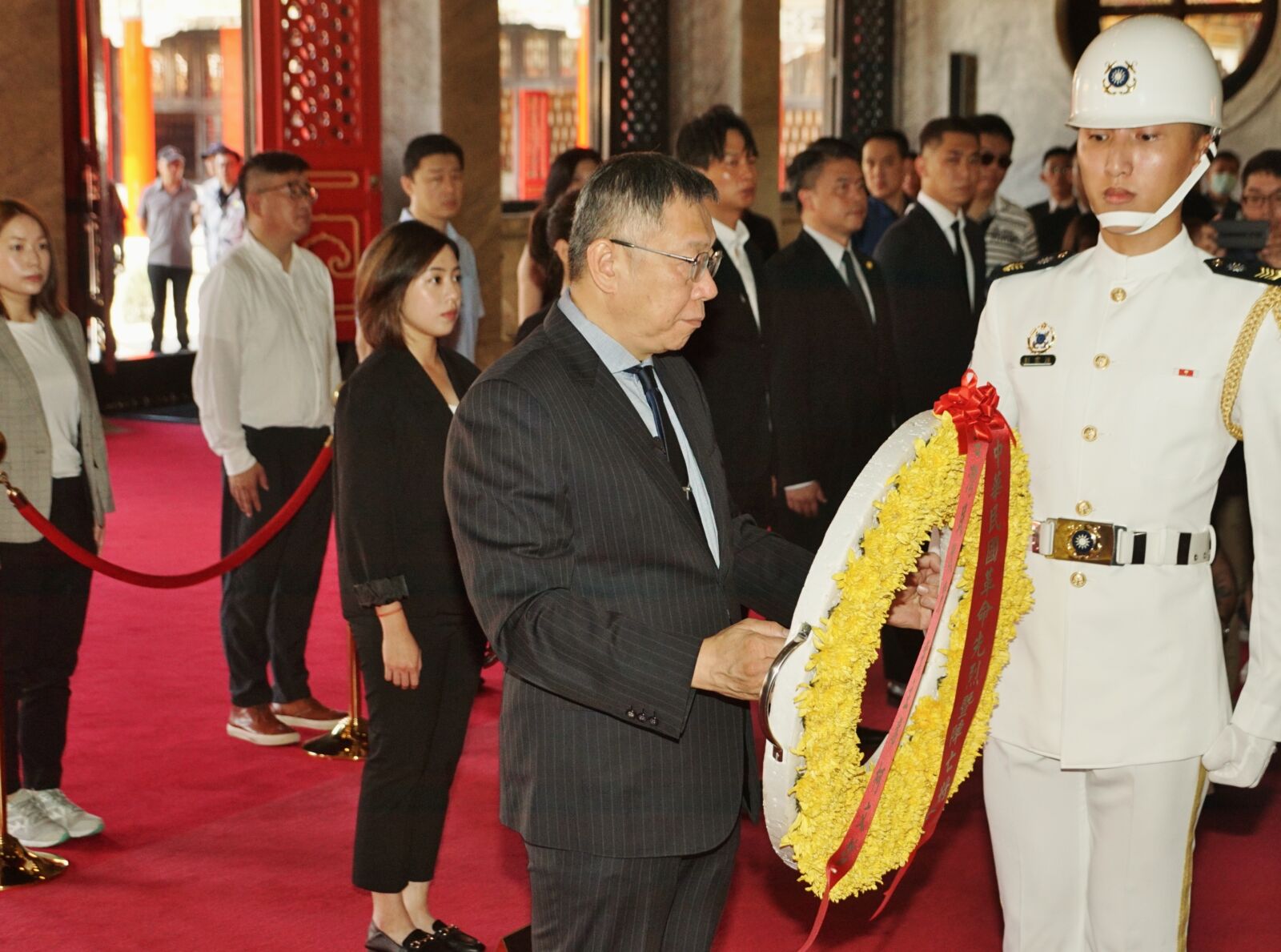 柯文哲說,今天是八二三戰役勝利65週年,當年守護台灣的戰爭英雄,有些在當時就殉國,其餘在這幾年陸陸續續凋零,不過戰爭的反省,不應當隨著時間被淡忘、甚至被遺忘,今天他特別率民眾黨同仁們來忠烈祠,除了向英靈致敬,也表達追思。