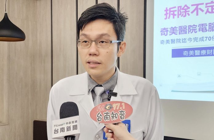 奇美醫院電腦刀中心暨神經外科主治醫師嚴世島表示,腦部電腦斷層和血管攝影檢查發現,女子右側顱內乙狀竇附近有腦膜動靜脈廔管,最終決定以電腦刀治療,歷經3次療程後,臨床症狀已逐漸改善,且治療後第8個月完全消除。