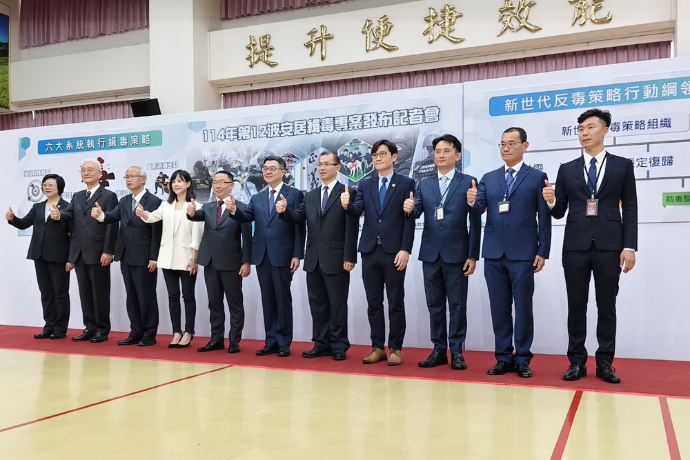 台灣高檢署與財政部關務署今(10)日共同發表114年「第12波安居緝毒專案」查緝成果,查獲毒品嫌疑人數達3726人,其中製造、運輸、販賣毒品1180人,羈押被告242人;查扣各級毒品重達1萬5673公斤,破獲製毒工廠、分裝場、植栽場共151座,成果相當豐碩。