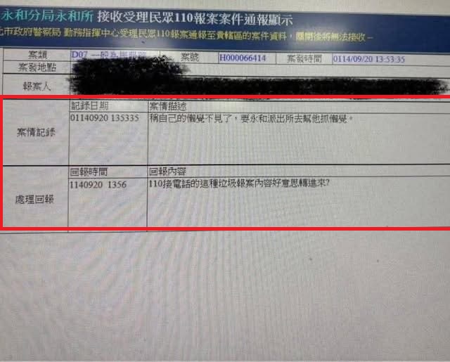 後來經過警方確認,的確接獲此案,但經派出所認定是惡作劇,所以未實際派員處理,但原本不應該外流的報案派遣系統卻曝光,分局也將進行調查進而懲處。