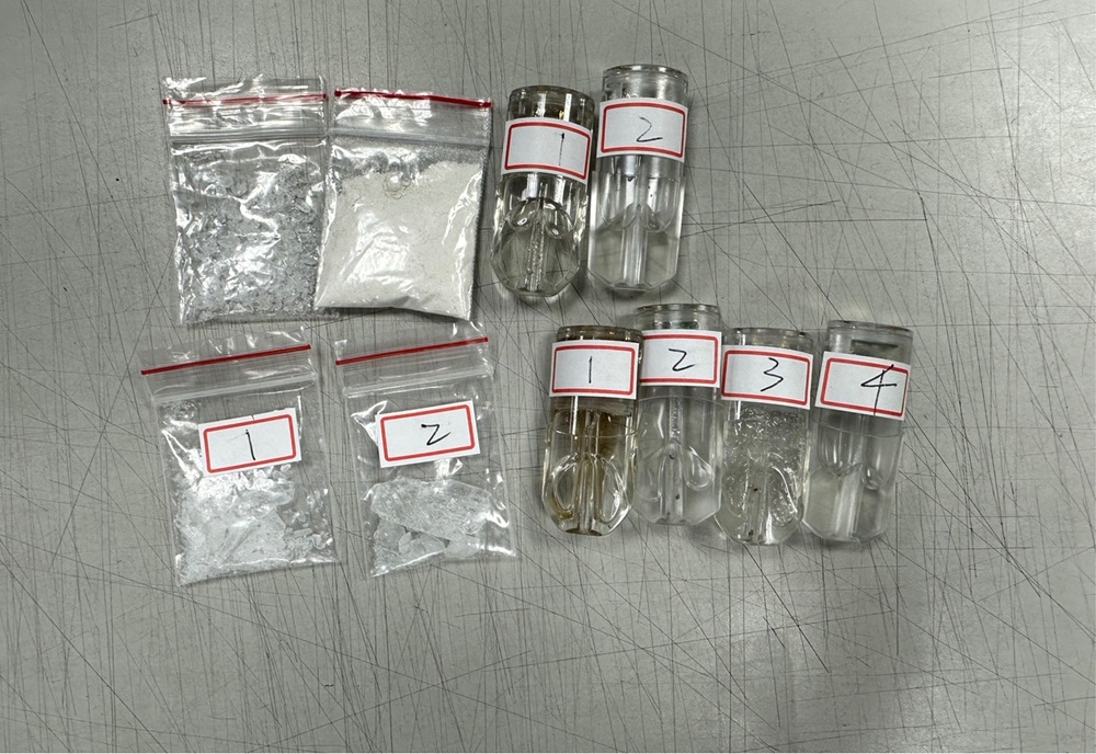 警方表示,員警在陳男身上,查獲電子菸桿(含菸彈)2支、依託咪酯菸彈2顆、安非他命2包;另外於徐姓婦人身上,查扣第一級毒品海洛因1包、第二級毒品依託咪酯菸彈2顆、安非他命1包等,當場將2人依現行犯逮捕。