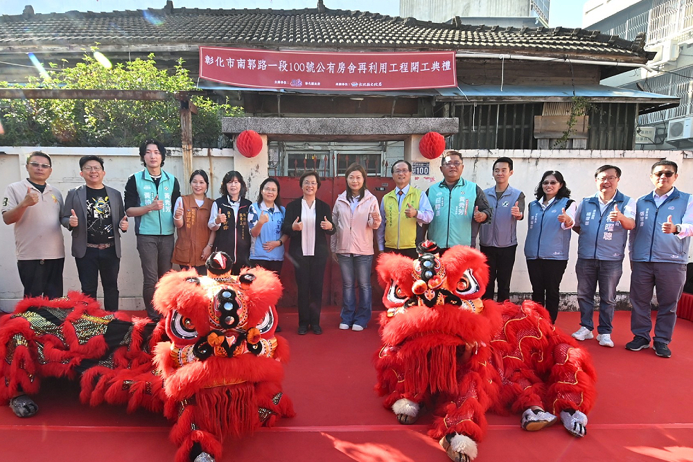 「今天不只是開工典禮,更是讓一棟老舊建築重獲新生的時刻。」王惠美表示,南郭路一段100號原是日治時期的彰化郡役所官舍,二戰後改為彰化縣議會主任秘書宿舍,107年移交縣府列為公有宿舍管理。惟因時代變遷,建物逐漸老舊,不堪使用,縣府為延續建物生命力,推動活化再利用,投入縣款5000萬元辦理修復工程,預計在115年底完工。
