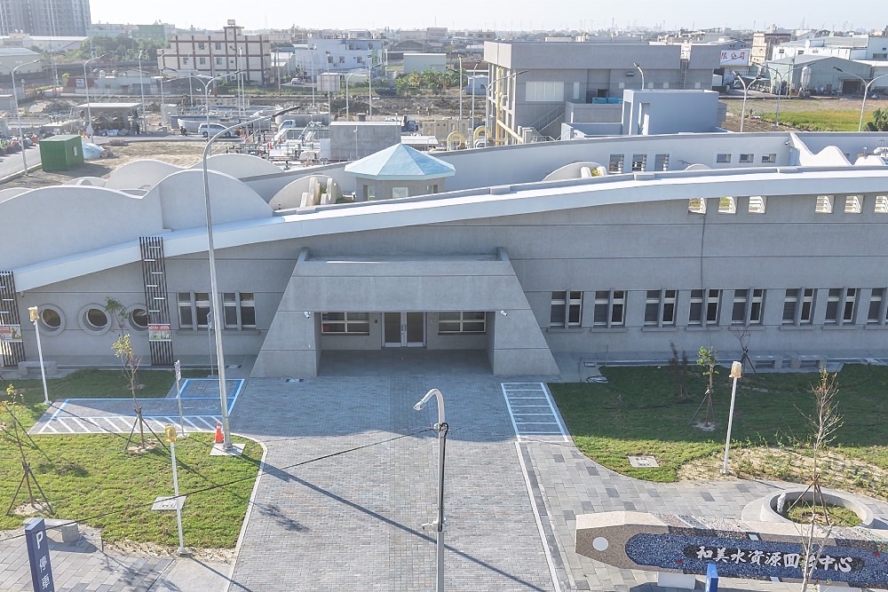 水利資源處表示,和美水資源回收中心,位於都市計畫區內占地約3公頃,本工程經費為3.76億元,111年9月開工,預計115年1月2日完工,除基本的污水處理設施外,也設置管理中心。管理中心外觀融合了和美鎮的傳統產業製傘形象,屋頂設計採用弧形曲線,象徵水的多變性,並計畫開放屋頂空間,供民眾休憩散步。廠區周邊設置緩衝綠帶,打造踏青空間。