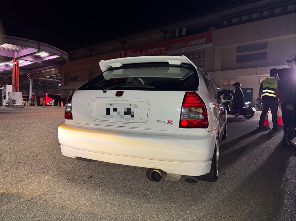 警方表示,當天執行過程,1輛改裝喜美車,外型神似電影「頭文字D」車款,引起現場關注。蔡姓車主也表示,剛以新台幣25萬元入手,過戶僅1天,特地選擇平日時段試車。自認可避開警察假日駐點,不料天算不如人算,仍遭稽查小組攔查。當車輛進行轉速噪音檢測時,蔡男神情緊張、來回踱步,深怕愛車受損,最終仍因不符規定被告發。