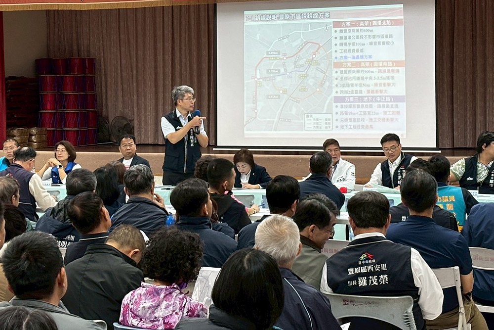 捷工局表示,有關紅線銜接台鐵豐原站之市區路段規劃,目前提出2個高架型式及1個地下化等3項可行性方案,並於說明會中向地方清楚說明各方案在服務範圍、工程型式、施工影響及用地條件等面向的差異。相關方案仍需在後續規劃階段進一步綜合評估,並將充分納入民眾意見,最終路線方案將以中央核定結果為準。