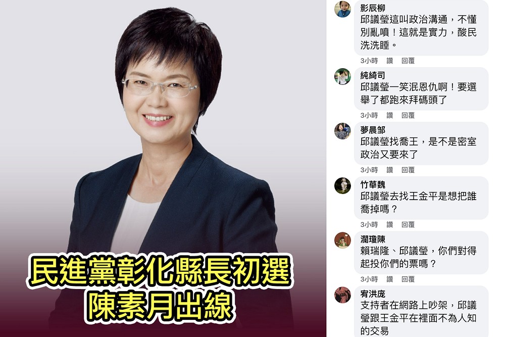 針對臉書粉專「敲敲告訴你」該篇貼文,近日有網友發現,一篇原本聚焦彰化縣長初選的臉書貼文,留言區卻突然出現多則與彰化選情無關的留言,內容矛頭一致指向高雄市長初選熱門人選邱議瑩,引發網友熱議。