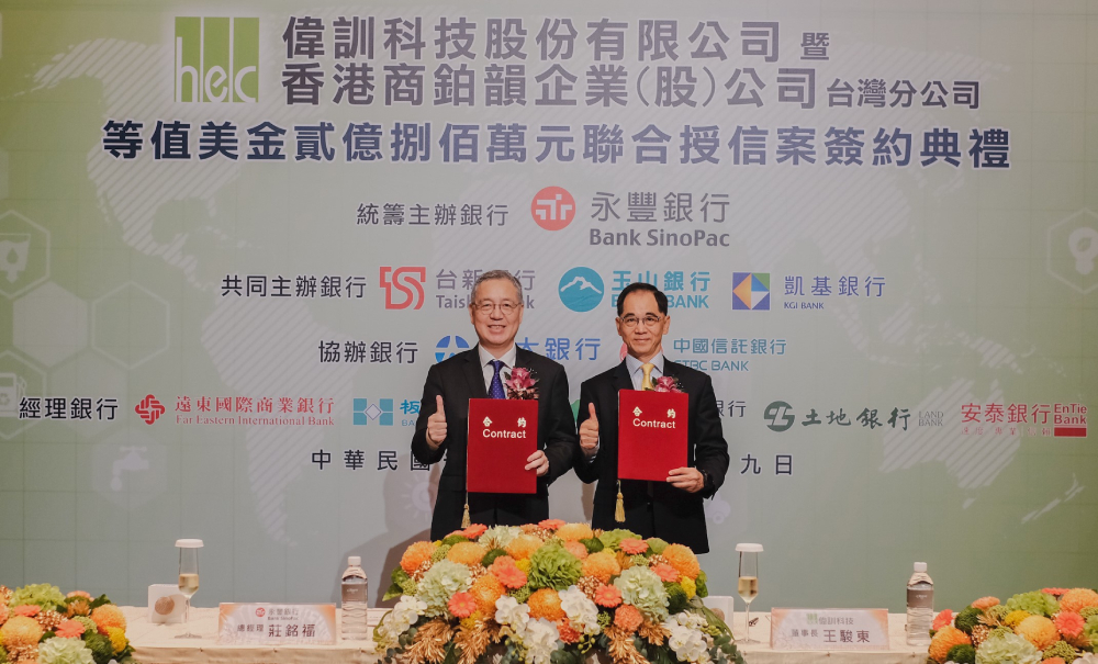 助力企業強化營運韌性,永豐銀行統籌主辦偉訓集團5年期等值美金2.08億元的新台幣聯貸案並擔任額度及擔保品管理行,今(29)日正式簽約;永豐銀行表示,本次聯貸案共11家金融機構參與,超額認購1.67倍,資金主要用途為償還既有金融債務,調整財務結構、降低成本,同時建構海外供應鏈。
