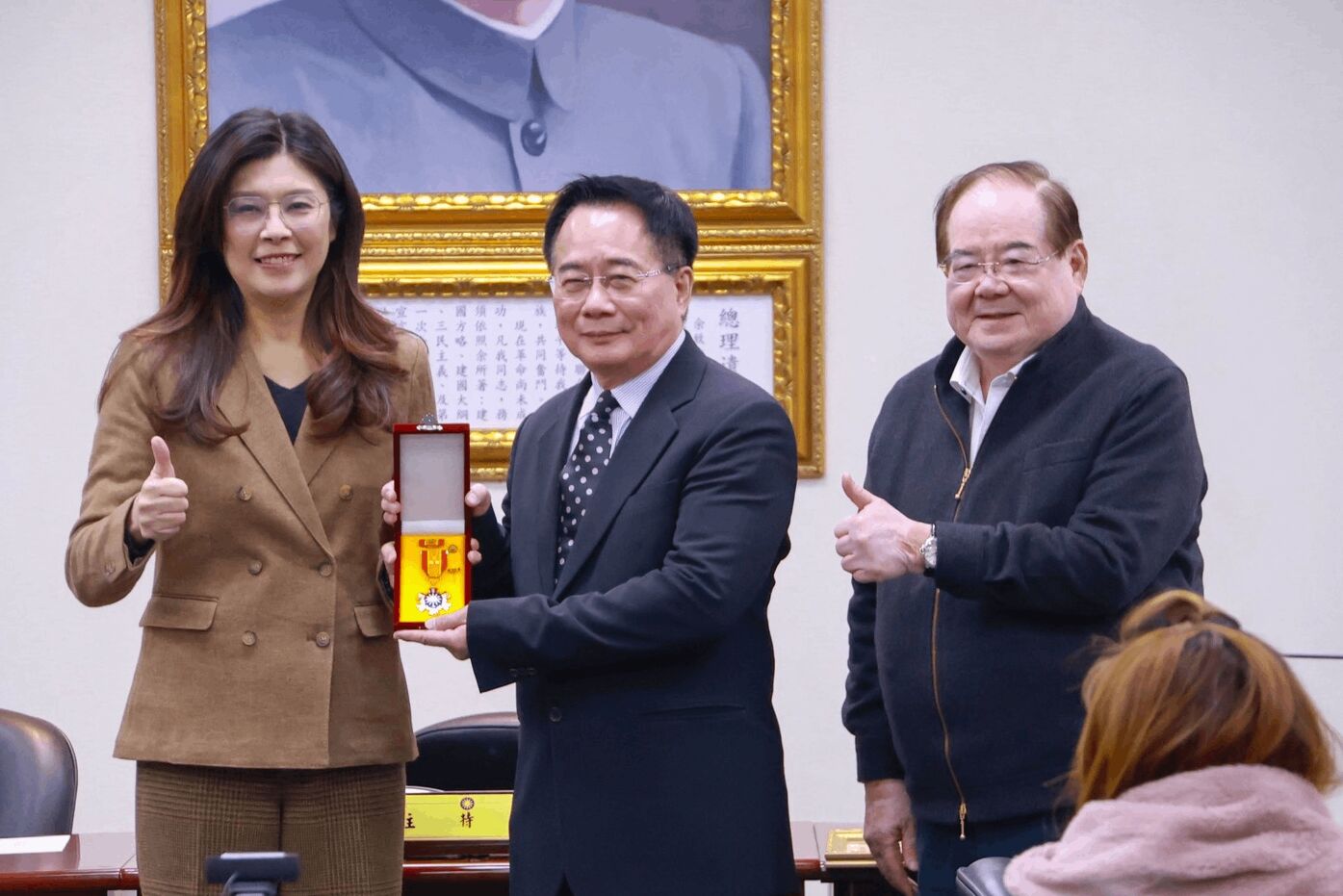 「所以,蔡正元不但是國民黨難得的人才,也是國家難得的人才,更是今天亂世當中難得一見的勇氣與良心。」鄭麗文強調,國民黨特地頒發給蔡正元最高榮譽「實踐一等獎章」,讓大家永遠知道並記得,「蔡正元是帶著勳章入獄的」,「面對來自強權的威脅與打壓以及司法淪為政權打手,我們永遠會站在公理正義的一邊。「國民黨永遠支持蔡正元,永遠堅持對的事情,我們一定會堅定地走下去。」