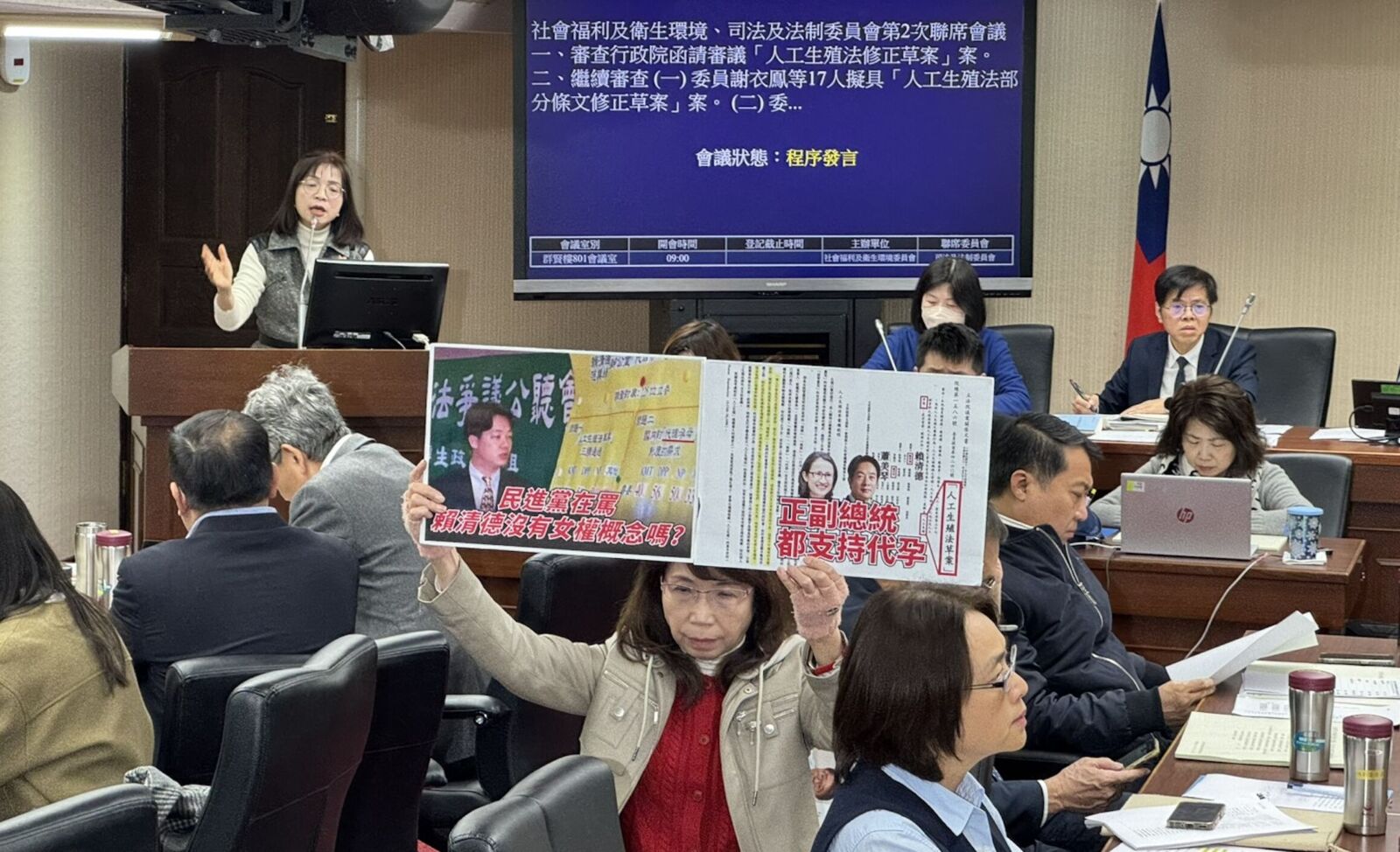 陳昭姿先是在議場舉牌,質疑現任正副總統都曾支持代理孕母,難道民進黨在罵賴清德沒有女權概念嗎?她隨後發言也強調,全世界最大的民主國家是美國,美國有47個州有完整的代理孕母制度,孕母和兒童都能受到完整的保障,這已經有非常多的實務經驗和文獻報告,反觀中國沒有代理孕母制度,導致地下化,才出現所謂的嬰兒工廠,難不成民進黨希望台灣變成這樣子嗎?