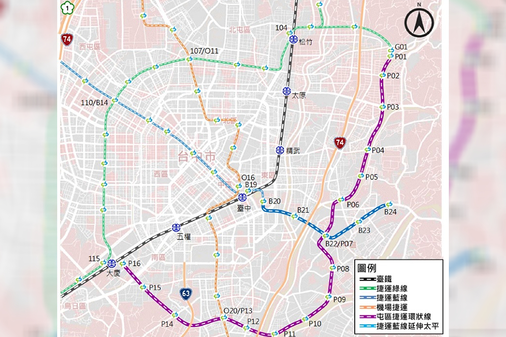 台中市政府持續推動中部地區軌道運輸建設,完善捷運整體路網布局。市府今(14)表示,日前已依交通部鐵道局114年10月22日審查意見,完成捷運紫線可行性研究修正報告,針對國產化推動、捷運路線銜接及營運模式等議題補充相關說明,並依程序再次提送交通部審議,持續推進紫線建設規劃作業。