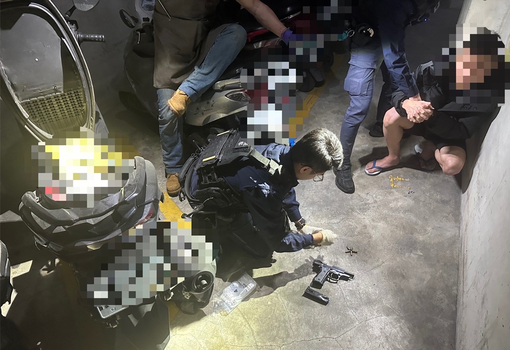 新北市新莊警分局光華派出所員警,昨(14)日深夜執行攔查勤務時,發現1輛租賃自小客車,在新莊區四維路一帶,涉嫌變換車道未依規定使用方向燈。新莊警分局表示,員警攔停查證過程,發現23歲黃姓男駕駛,為台中地檢署發布的詐欺通緝犯。搜索時又在黃男身上及車內,查獲多項毒品,包括卡西酮、安非他命、K他命等。員警持續追查,今日凌晨又在新莊區1處停車場內,在黃男的機車內,查獲改造手槍1把、彈匣1個及9毫米子彈20顆。