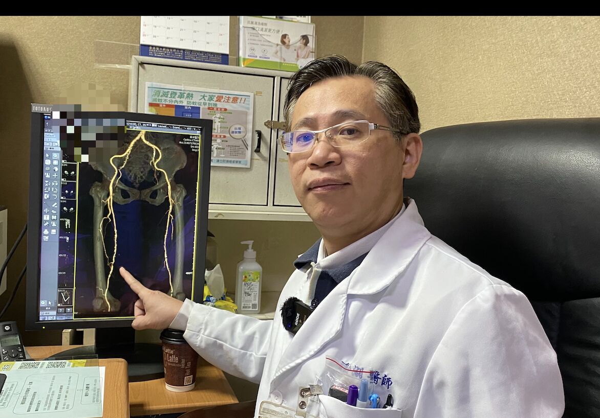 員榮醫院心臟外科主任賴金湖表示,老翁本身有糖尿病史,一開始評估,懷疑合併下肢動脈阻塞,隨即安排動脈分段壓力檢查,結果顯示ABI踝肱壓力比值指數明顯偏低,確認存在動脈阻塞情形,後續再透過電腦斷層動脈攝影,清楚定位血管狹窄位置,證實動脈循環不良,正是造成傷口久未癒合主因。