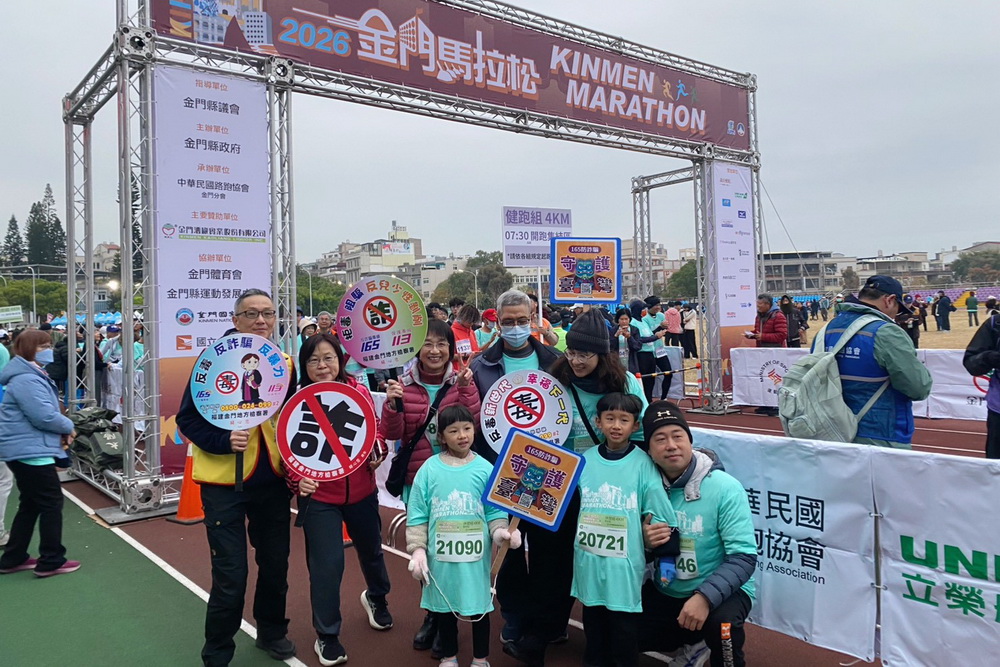 金門縣政府「2026 金門馬拉松」今(24)日舉行,金門地檢署為提升民眾反毒、防詐、兒少保護意識,並深化修復式司法理念,結合金門馬拉松健康休閒組活動,由檢察長王柏敦帶領同仁前往活動現場與參與民眾互動,進行法治宣導,期使相關理念融入民眾日常生活,促進守法觀念,並提升自我保護意識,以預防被害情事發生。
