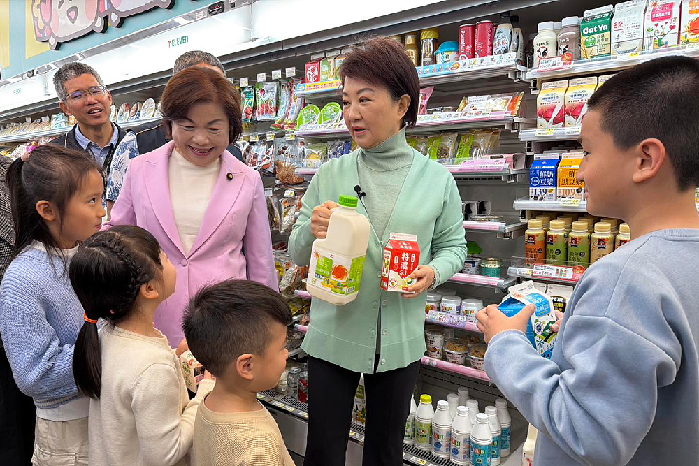 台中市長盧秀燕今日赴台中市河南路一家超商,視察讓公立國小和幼兒園學生免費喝牛奶兌領動線時回應,上班時間不談政治,在小朋友面前也不談政治。