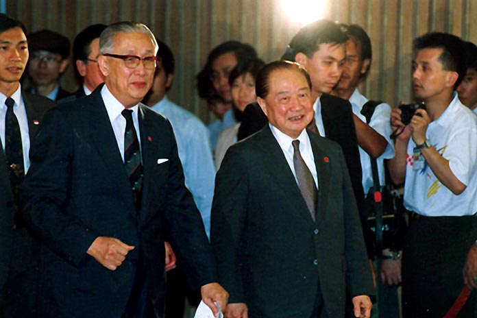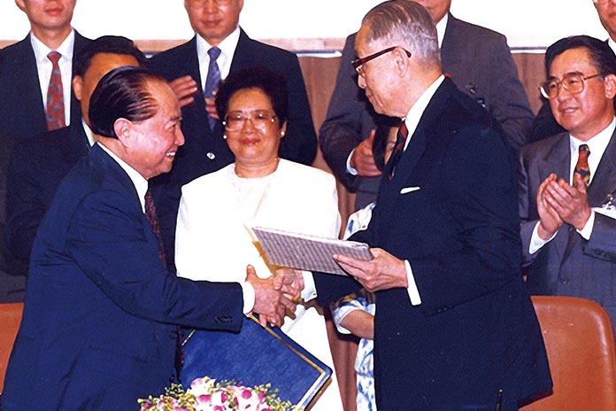 和汪道涵(右)先生在新加坡舉行「辜汪會談」,簽署四項協定。(海協會提供).jpg)