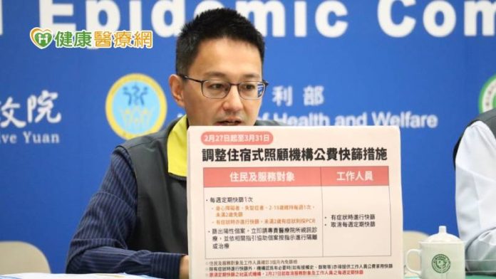 社區式照顧機構服務對象跟工作人員不須再進行定期快篩,住宿式照顧機構住民及服務對象快篩頻率也改為一週一次,而工作人員則不需進行快篩。相關規定自2月27日起實施,至3月31日止。