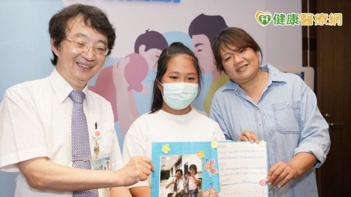 ▲兒童中重度異膚病友小云與媽媽,手做卡片感謝中國醫藥大學兒童醫院王志堯院長長期以來的治療與照護。