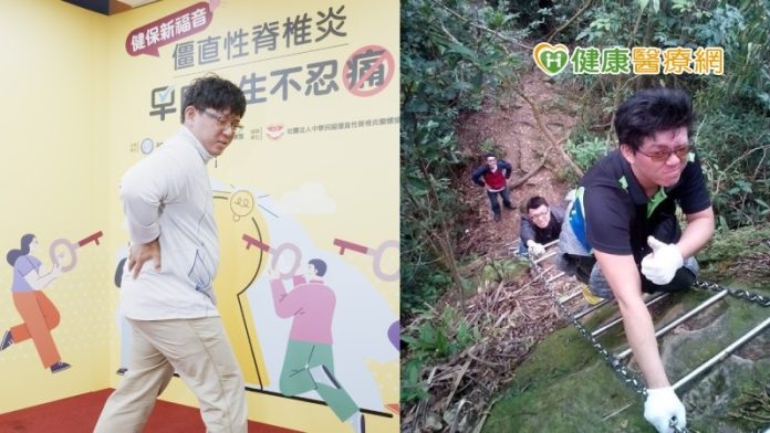 42歲的軟體工程師「阿鴻」五專時上體育課出現膝蓋腫脹,看了跌打損傷貼膏藥卻無好轉,輾轉到風濕免疫科才確診是僵直性脊椎炎,嚴重時需每天服用2顆止痛藥,但又擔心長期吃藥會傷身,常常未按時服用藥,病況加劇導致駝背,身高倒縮2公分變168公分。