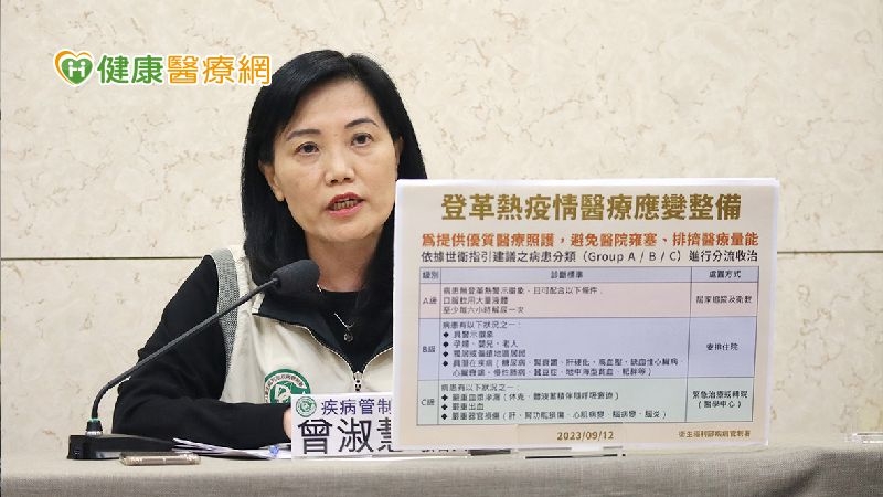 根據國健署資料顯示,國內今(2023)年截至9月11日,已累計6,464例本土病例。疾管署發言人曾淑慧表示,為了提供登革熱病人更優質的醫療照護、避免排擠醫療量能,疾管署參考世界衛生指引建議,分為A、B、C三級來進行分流收治以及雙向轉診。