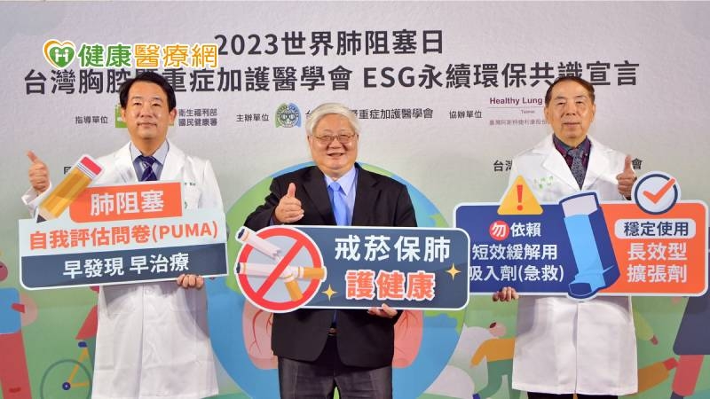 每年11月的第2個或第3個星期三為「世界慢性阻塞性肺病(COPD)日」,今年主題為「Breathing is Life – Act Earlier」,呼吸就是生命,盡早行動。台灣胸腔暨重症加護醫學會於13日發表ESG(環境保護Environment、社會責任Social、公司治理Governance)宣言,聯袂國健署共同簽署,呼籲台灣企業與醫療體系積極採取減碳和環保措施,促進綠色能源使用,進一步保護國人呼吸系統的健康。