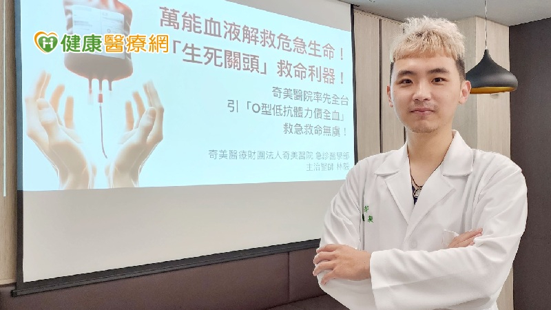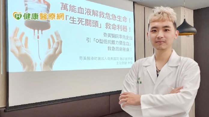 奇美醫院急診醫學部主治醫師林毅說明,國際醫學研究已顯示,使用O型低抗體力價全血於嚴重外傷病人能有效提升存活率,同時減少血品整體用量。歐美多家醫學中心已將其列為外傷急救的基本配備,證明了這一方法的有效性和重要性。