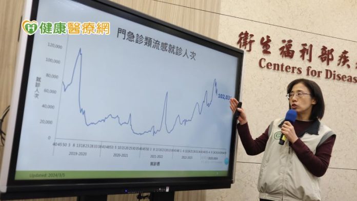 【健康醫療網/記者吳儀文報導】根據疾管署資料顯示,今(2024)年第9週(2/25-3/2)門急診類流感就診人次為10.2萬人次,較上週下降。不過,疾管署發言人羅一鈞表示,流感疫情雖然已經過了最高點,預估未來疫情將會稍微緩和,但目前仍處高原期,即日起流感疫苗將擴大為全民接種,鼓勵民眾能盡速接種疫苗。