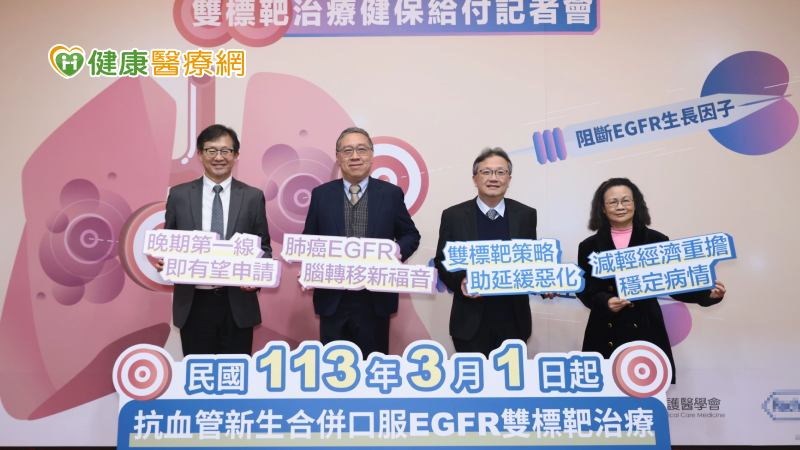 台灣胸腔暨重症加護醫學會陳育民理事長表示,雙標靶藥物通過給付,顯示政府對於國人頭號健康殺手肺癌的重視,能減輕患者經濟重擔,讓病人及其家庭的經濟、工作較不受影響,也讓肺腺癌腦轉移第一線治療策略迎向全新時代。