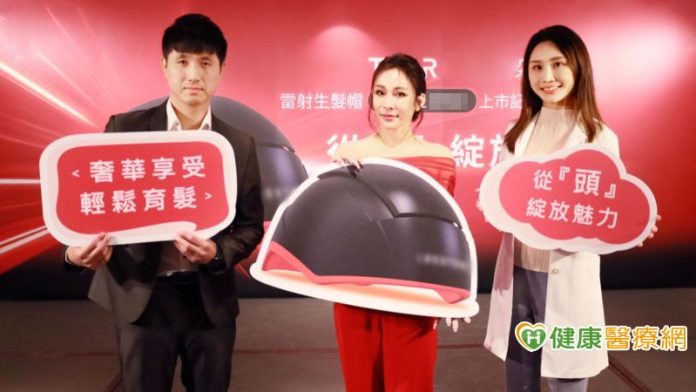 ▲魅力天后溫嵐(左)、知名診所副院長張佳穎醫師(右)共同出席第三代雷射生髮帽上市記者會。