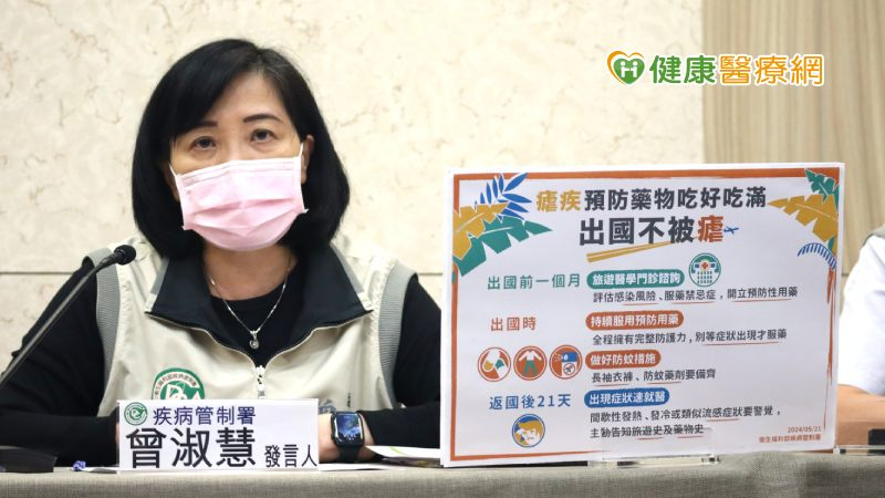 若要出國前往瘧疾流行地區,目前有瘧疾預防藥物可以使用,曾淑慧發言人建議,民眾可以在出國前一個月前往旅遊門診評估、開立預防性用藥,不過出國時要持續服用,預防性用藥需要全部服用完畢才行,不可以等到有症狀才開始服藥。