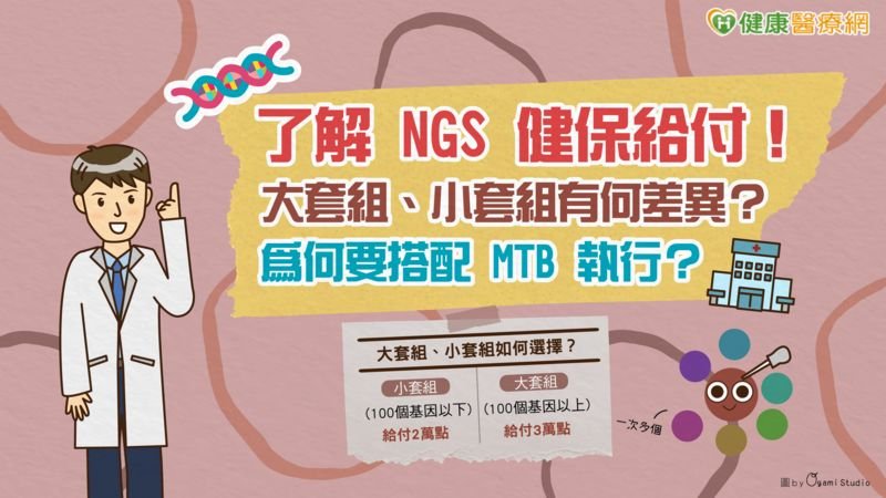 【健康醫療網/記者吳儀文報導】今(2024)年 5 月,癌症次世代基因定序檢測(NGS)終於納入健保給付,不過許多民眾對於給付方式、檢測醫院的選擇仍不太了解。究竟小套組、大套組等給付方式有何差別?為什麼衛福部要求檢測醫院需自行設立或跨院組成分子腫瘤委員會(MTB)呢?台北榮民總醫院腫瘤內科醫師姜乃榕一一解答!