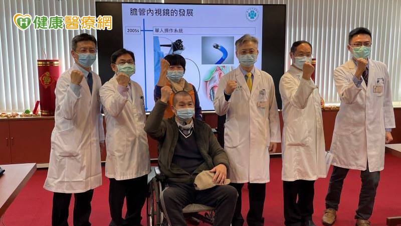 為了降低外科手術風險,目前已有新發展的導管式膽管內視鏡系統,透過操作一支更細的內視鏡進入膽管,直接目視觀察膽管的構造及結石的狀況,且搭配親水性電擊碎石術或雷射碎石術,可順利擊碎巨大堅硬的結石,幫助更多以往困難處理的膽管結石病患。蔡炘儒醫師強調,臺中榮總自110年6月開始透過此治療方式已成功完成3例困難膽胰管結石治療,透過目視下執行病灶處切片,可望提升診斷率。
