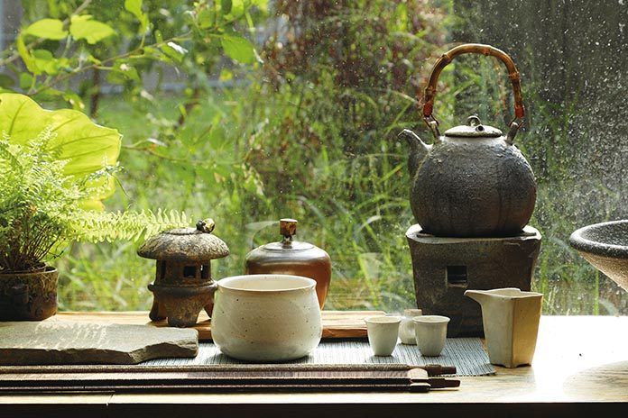 9月初,「2017台北國際茶文化產業展」在台北世貿一館盛大登場,特別引人注目的是正對大門入口、一柱擎天的高聳鮮紅四方柱,分別以氣、雲、霧、雨四種天氣變化,代表程逸仁、林義傑、郭詩謙三位陶藝家的茶器創作與〈二一茶哉〉的茶品,在清一色制式隔間排列的偌大展場顯得十分突兀。擔任召集人的資深陶藝家林義傑捨棄成語「大隱於市」,而命名為「大雲隱市」,他解釋並非自己無厘頭或引用有誤,而是希望茶器創作能打破常規、進一步與茶文化同步風起雲湧。說法看似硬拗,但看看程逸仁與郭詩謙現場呈現的創作特色,彷彿也有著氣與霧無限延伸爆發力的期許吧?