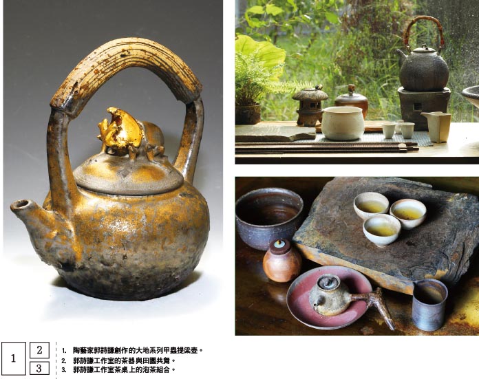 勇奪復興美工雕塑科畢業作品第一名的郭詩謙,退伍後先開設陶藝教室,專職陶藝教學,「行有餘力」再來創作,由於特別重視空間氣氛的營造與教學品質,因此招生經常爆滿,甚至引來多家媒體爭相報導,卻也使得創作時間大為壓縮,賺得第一桶金卻悖離了學陶的初衷。因此斷然結束陶藝教室,改為作品展售空間,從此專注陶藝創作,作品且以茶器為大宗。而近年鋦補陶瓷器在兩岸颳起旋風,郭詩謙也巧妙地運用鋦補技法,為作品更添趣味,例如近作大地系列的甲蟲茶倉,刻意的裂痕加上鋦釘卻更為討喜。