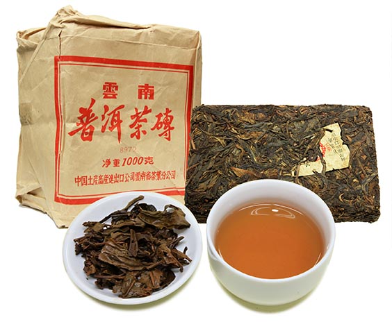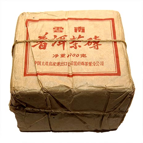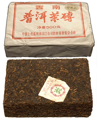 1973年昆明茶廠成功研發渥堆工序後,八、九○年代產製的茶磚就大多為熟茶(又稱熟磚),生茶(又稱青磚)反而是少數;顯然因為熟茶比起生茶較為黏稠,也較易緊壓成磚的緣故吧?例如昆明茶廠著名的七五八一茶磚就多為熟茶;而六○年代勐海茶廠的「文革磚」則為生茶。