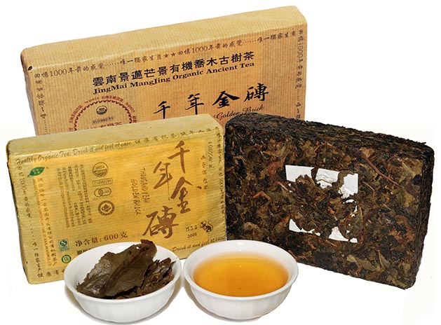 2004年起,完全採千年以上老樹最優質茶菁,所分開處理壓製而成的「千年金磚」,除了少數為六百公克外,大多為一千公克規格。特色為香氣純和帶山頭氣,滋味明顯濃稠飽滿,金黃透亮的湯色活性特佳,尤其特有的杯底幽蘭香,更是其他茶品所不能及。