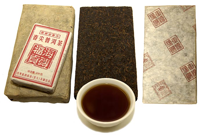 九○年代另有一款受到矚目的「春尖貢磚」,是1995年雲南政府「星火計畫」在勐海縣成立的「福海茶廠」,接單以野生喬木春尖芽茶製作的熟茶磚,包括二百五十克傳統大小的茶磚與一公斤的大茶磚兩款。2001年經台商康提茶品輾轉購入後在台灣烘焙,並以木刻印製的手工茶票紙重新包裝,甘醇厚實的韻味與口感也深受消費者喜愛。