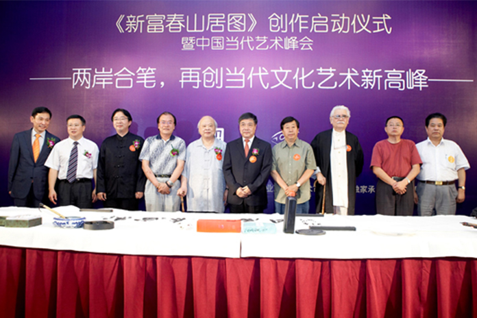 二○一一年,兩岸《新富春山居圖》的創作邀請了海峽兩岸最具聲望的八位藝術家共同參與,分別是中國文聯副主席、中國美協主席劉大為,中華畫院院長、中華國家畫院院長楊曉陽、中華畫院院長、台灣著名水墨畫大師李奇茂,中國美院博導、著名山水畫家孔仲起,著名人物畫家吳山明,中華畫院秘書長、台灣著名山水畫家白宗仁,安徽省美協主席、著名山水畫家張松,江南書畫院院長宋柏松。