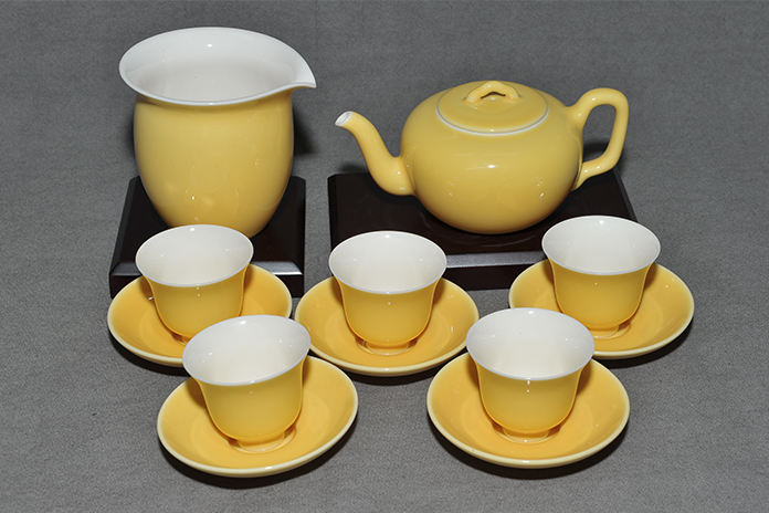 蔡曉芳則早以多年對宋瓷的研究為基礎,開創出一系列深具人文品味與美學內涵的汝窯茶器,施釉不厚且成色均勻,讓茶人能充分感受汝窯「雨過天青雲破處」的特有色澤與風采,其中釉面則包含開片與未開片兩種。之後更發展出許多單色釉茶具,如乳黃、牙白、定白、天青、鐵斑等系列。