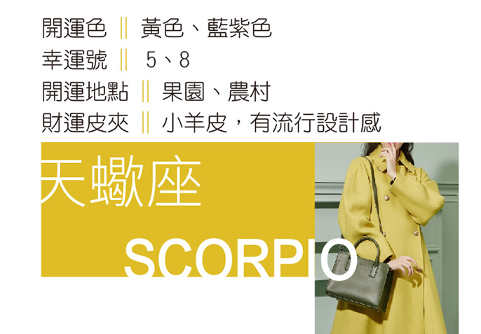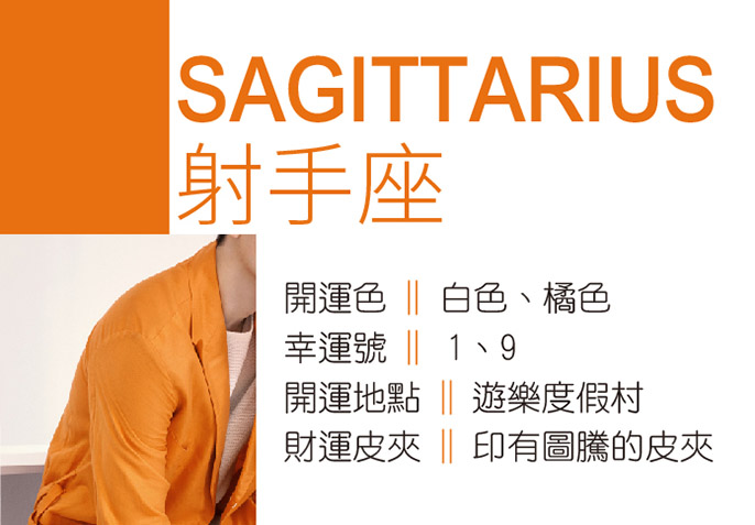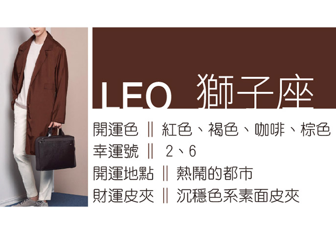 年行星運轉,星座幸運色也會有所變化,在新的一年裡,我們可以運用新年度幸運色來除舊佈新,在日常生活中當穿搭的靈感,把幸運帶著走。TIFFANY老師也特別解說幸運號、地點,更教你怎樣選擇皮夾,讓財運旺不停!