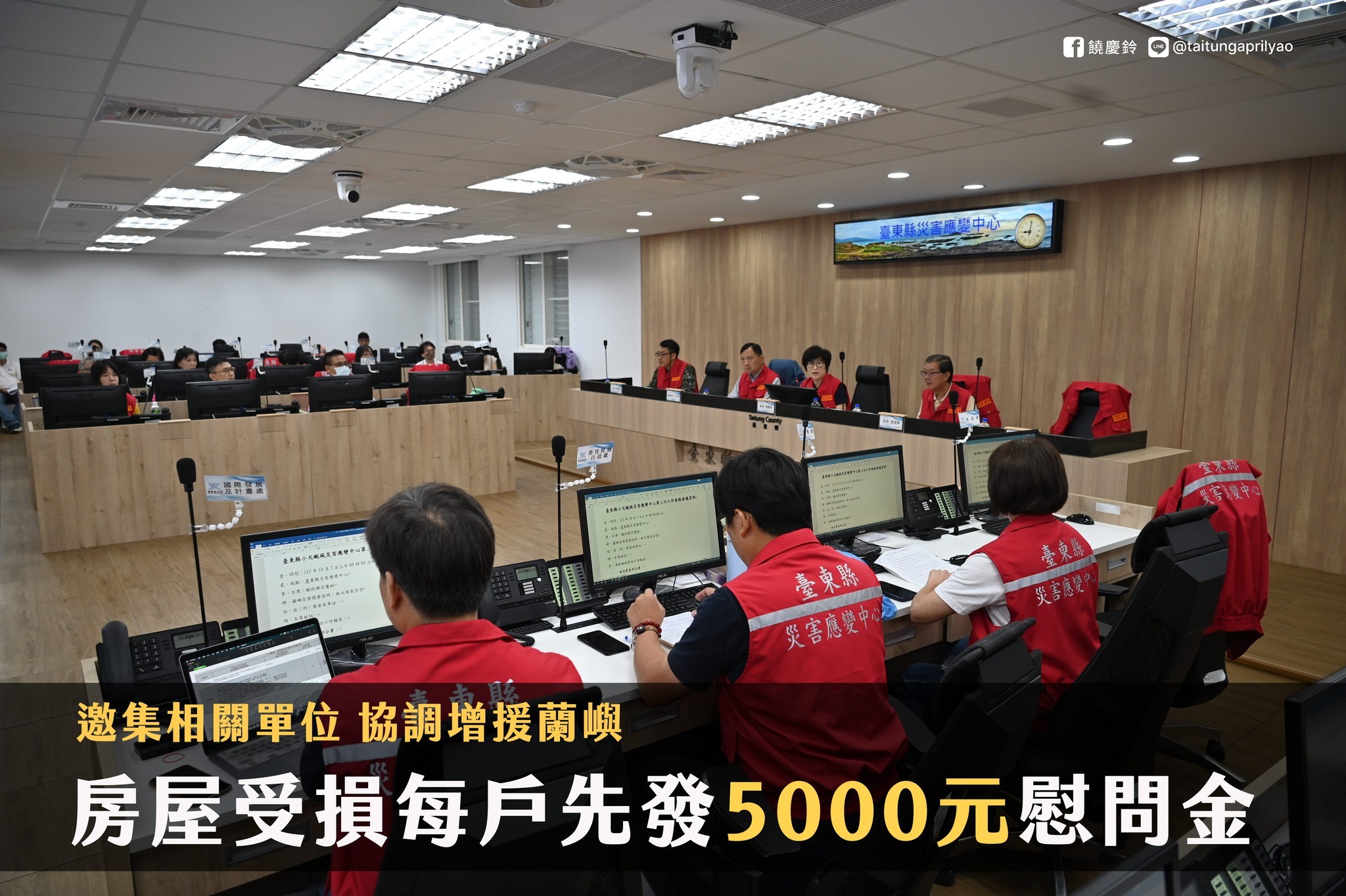 饒慶鈴在其臉書指出,昨天她前往蘭嶼了解學校、住家、公共設施受災情況,結果發現破壞非常嚴重,但因蘭嶼對外交通非常不便,因此必須有效整合各單位救援人力及物資,今天早上再度召集相關局處及單位協調,增加更多人力、物資前進蘭嶼。
