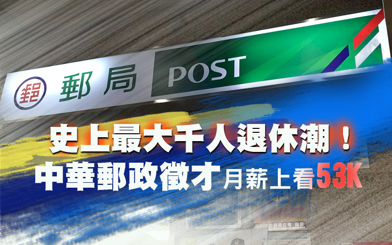 日前內政部示警,台灣有史以來最大規模的退休潮來勢洶洶,中華郵政盤點2023上半年到 2024下半年,屆齡退休加上自請退休的員工,預估大約有1000人,因此大舉徵才,招考正取上千人,備取400多人,月薪有望 5.3萬元;一般金融等類科的專業職,大專以上畢業月薪約4.3萬;櫃台業務等類科、郵遞業務及運輸業務,高中職以上學歷,月薪至少3.8萬元。