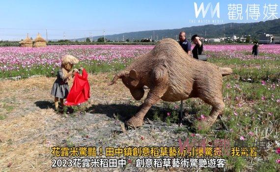 (觀傳媒彰化新聞)【記者陳雅芳/彰化報導】稻草驚艷變裝秀!彰化縣田中鎮,以其豐富的稻米聞名全國,田中鎮農會今日於頂潭里望高寮舉辦2023花露米稻田中在地產業推廣活動,吸引眾多遊客參與。活動中,農會展出了一系列創意稻草藝術,包括稻草裝置藝術、稻草迷宮、小娃鬥牛、以及稻草鋼琴等,展品豐富可愛,讓遊客都說我驚喜!