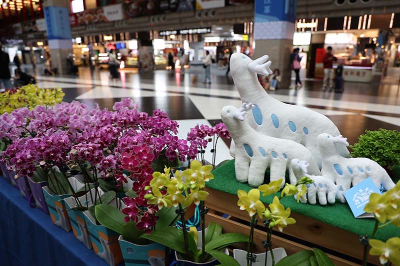高達八公尺的臺灣國際蘭展吉祥物「Orchidsaur」今天也現身會場,吸引往來民眾駐足拍照。蘭展限定週邊商品「Orchidsaur」家族玩偶、造型雞蛋糕等也首度曝光,屆時將在第23屆世界蘭展現場限定販售。