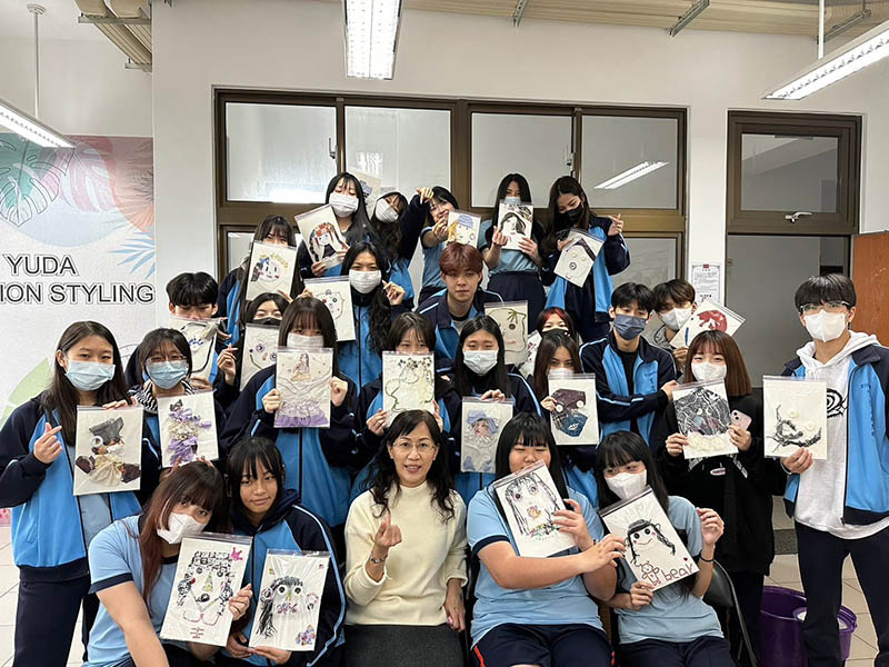 活動現場,同學們熱情高漲,紛紛拿出自己準備的材料開始動手。有的同學選擇了色彩豐富的零食包裝來做為臉部的顏色,有的則巧妙地利用瓶蓋做為眼睛,紙盒作為鼻子,展現了豐富的想象力和創造力。他們在洪老師的指導下,一步步完成了自己心中的設計,每一個作品都充滿了他們對藝術的熱愛和對生活的獨特見解。除了學生們的熱情參與外,本次活動還吸引了許多師生的關注和好評。時尚造型科的同學們紛紛表示:「這樣的創意教學模式不僅豐富了學生的課堂內容,更激發了創造力和想像力,為學習注入了新的活力和動力。」